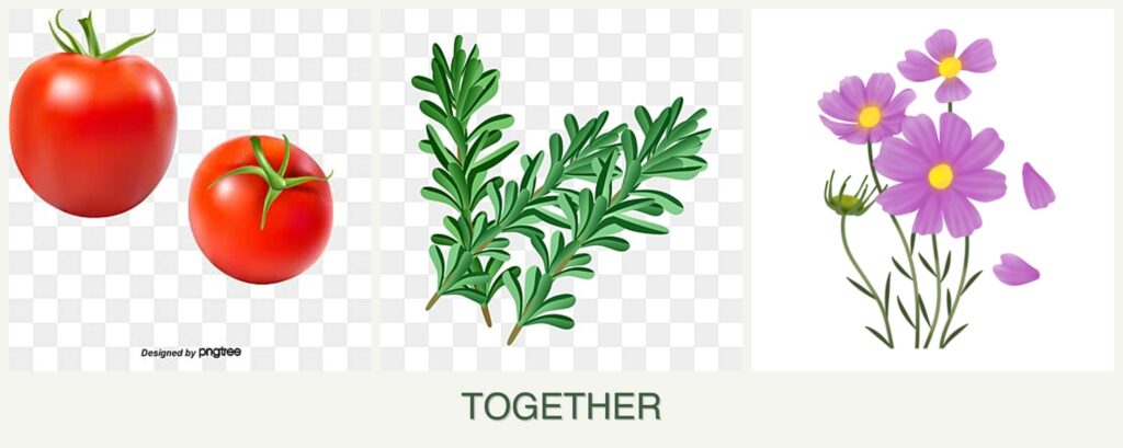 - Pest Control: Rosemary’s aromatic oils can deter certain pests that might otherwise target tomatoes. Cosmos attracts beneficial insects that prey on common tomato pests.