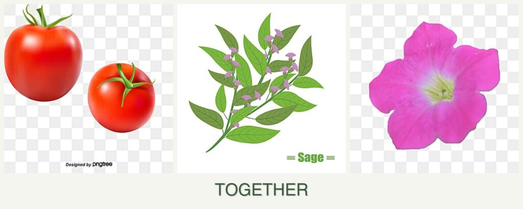 Planting tomatoes, sage, and petunias together can offer several advantages: