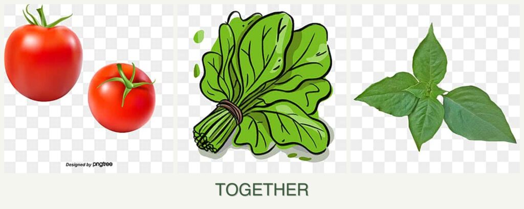 Planting tomatoes, spinach, and basil together offers several advantages: