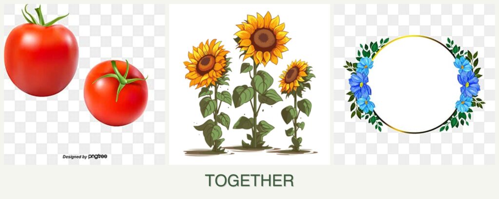 Planting tomatoes, sunflowers, and zinnias together offers several advantages: