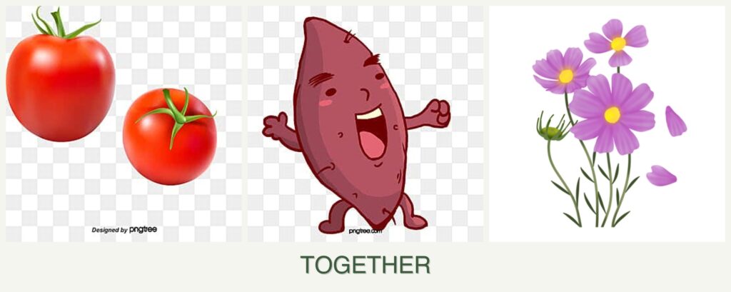 - Growth Requirements: Tomatoes and sweet potatoes both thrive in full sun and well-drained soil, while cosmos can tolerate a bit more drought and poorer soil conditions. This makes them compatible in terms of sunlight and soil needs.