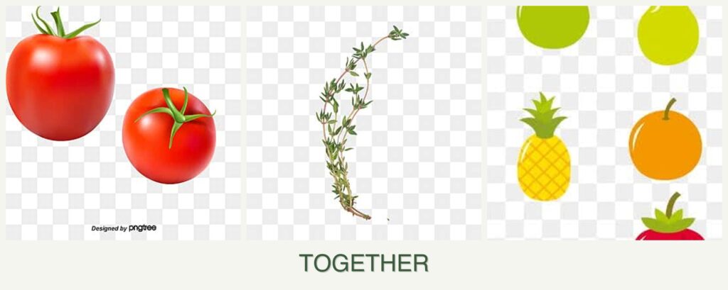 - Spacing: Tomatoes and thyme can be planted relatively close together, but pears need ample space to grow and develop their root systems.