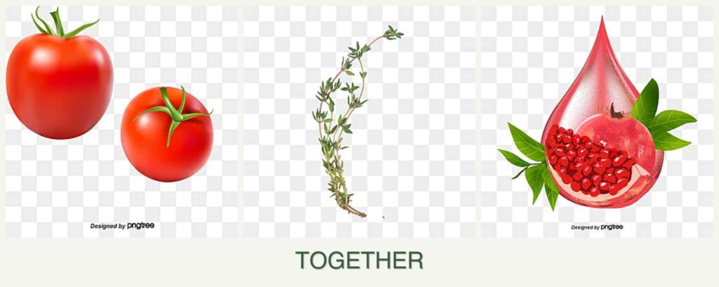 Planting tomatoes, thyme, and pomegranates together offers several benefits: