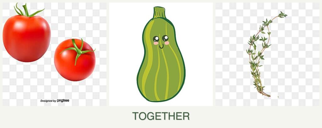 Planting tomatoes, zucchini, and thyme together offers several advantages: