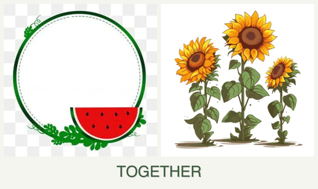 - Space Efficiency: Sunflowers grow vertically, allowing watermelons to spread along the ground.