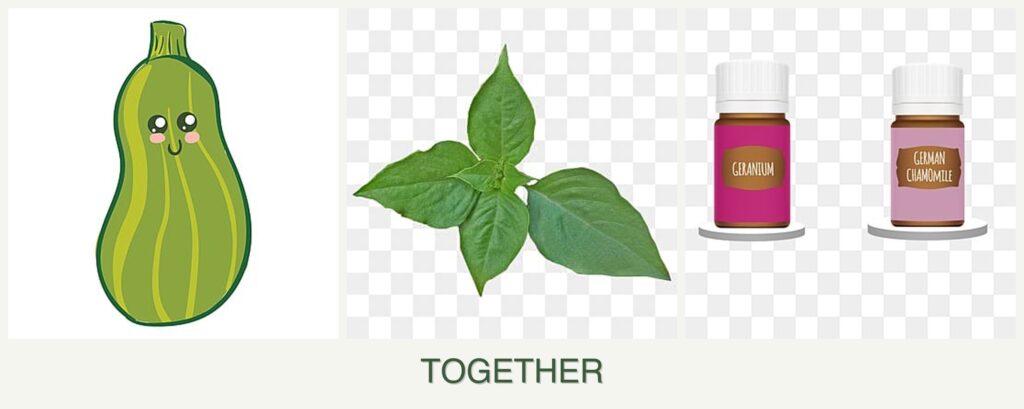 Planting zucchini, basil, and geraniums together offers several advantages: