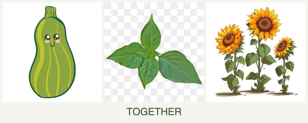 Planting zucchini, basil, and sunflowers together offers several advantages: