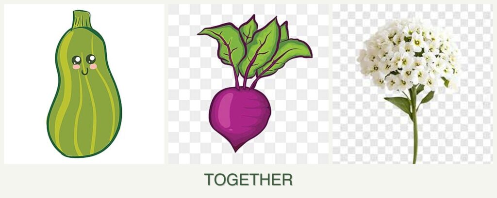 Planting zucchini, beets, and alyssum together offers several advantages: