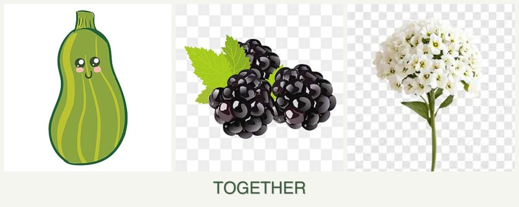 Planting zucchini, blackberries, and alyssum together offers several advantages: