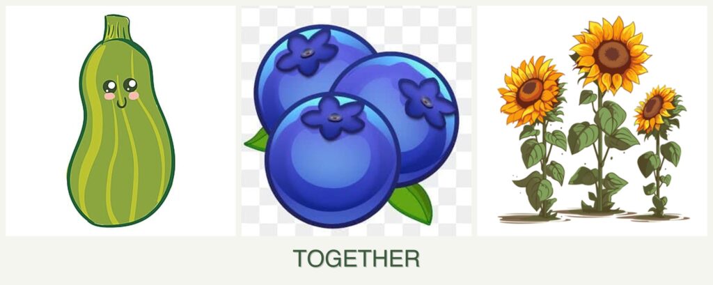 Pest Control: Sunflowers can attract pests like aphids, which might spread to zucchini. Blueberries benefit from specific pest management strategies that don’t align with zucchini or sunflower needs.