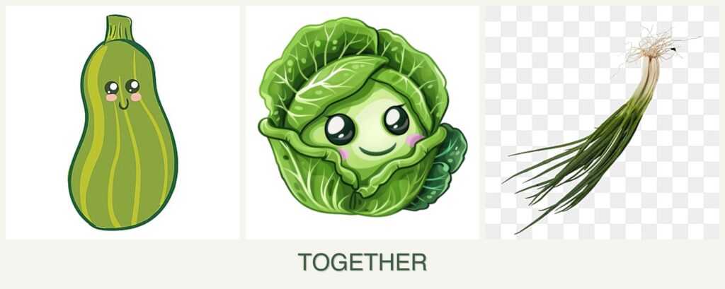 Planting zucchini, cabbage, and chives together offers several advantages: