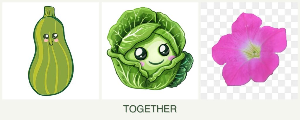Can you plant zucchini, cabbage and petunias together?