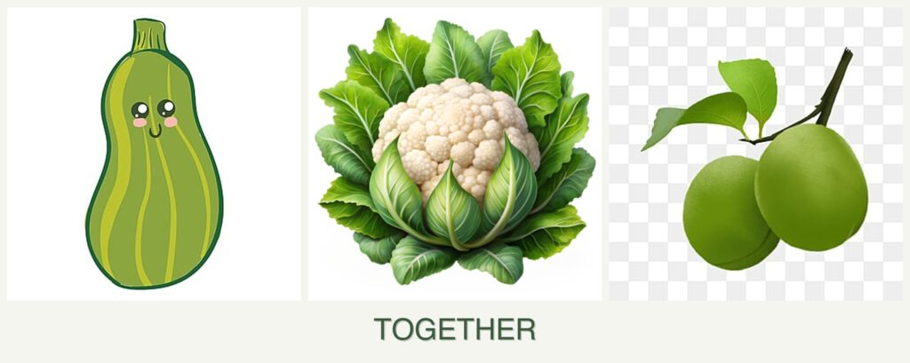 Can you plant zucchini, cauliflower and plums together?