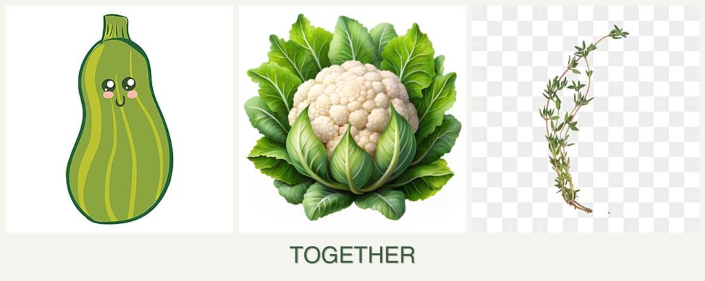 Planting zucchini, cauliflower, and thyme together can offer several advantages: