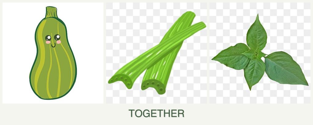 - Celery thrives in moist soil and can benefit from the shade provided by zucchini’s broad leaves, helping to retain moisture.