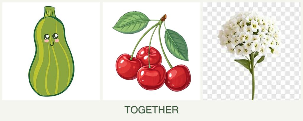 - Growth Requirements: Zucchini and alyssum share similar sunlight and soil needs, whereas cherries need deeper soil and more space.