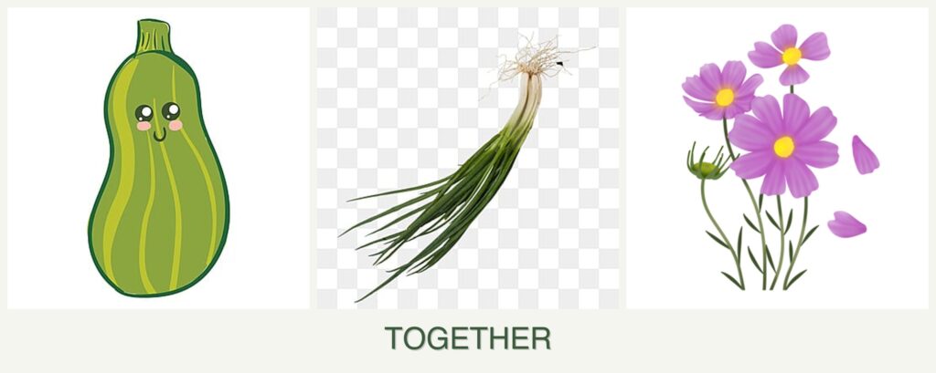 Yes, you can plant zucchini, chives, and cosmos together. These plants complement each other well in a garden setting. Zucchini benefits from the pest-repelling properties of chives, while cosmos attracts pollinators, improving zucchini’s fruit set. All three plants thrive in similar growing conditions, making them suitable companions.