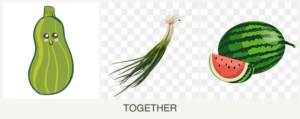 Watering Needs: Melons need more water than chives and zucchini, so careful irrigation planning is necessary.