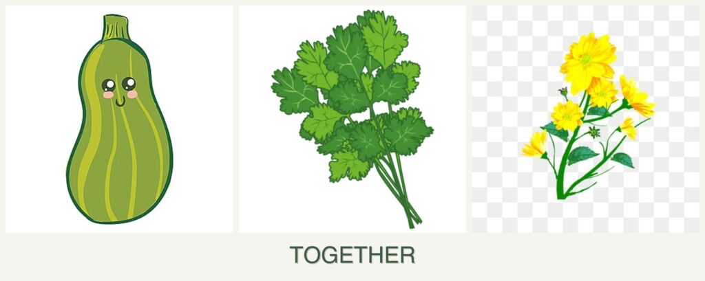 Planting zucchini, cilantro, and calendula together can offer several benefits: