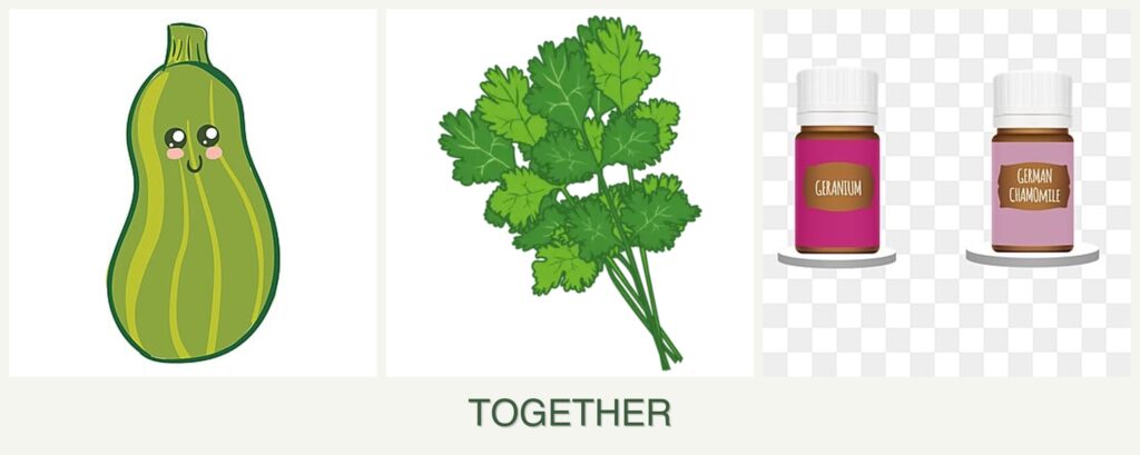 What should not be planted with zucchini, cilantro, and geraniums?