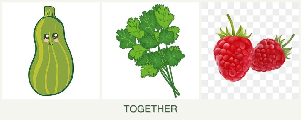 While planting zucchini, cilantro, and raspberries together isn’t ideal, each plant can offer benefits to other companions: