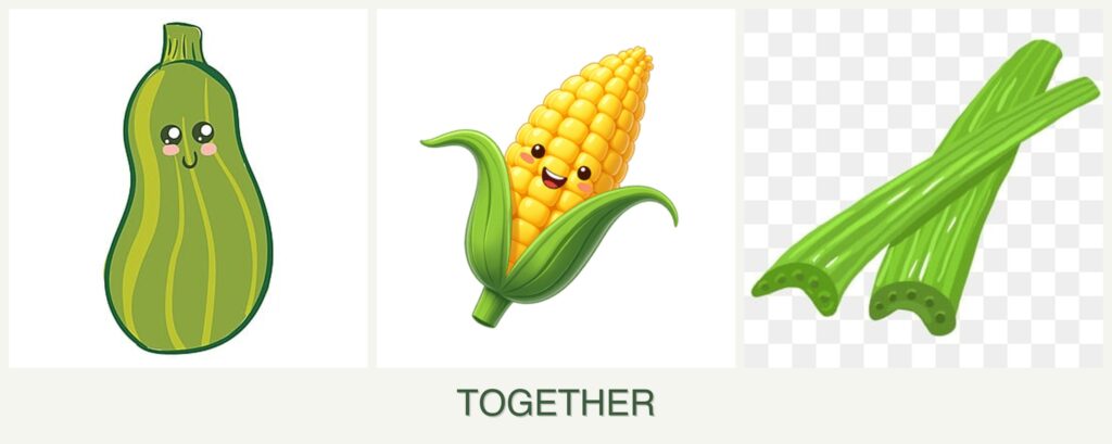 - Soil Health Benefits: Corn’s deep roots aerate the soil, benefiting the shallow roots of zucchini and celery.