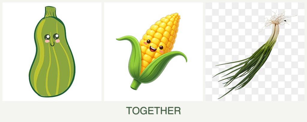 - Space Efficiency: Corn’s vertical growth allows zucchini to spread on the ground, maximizing garden space.