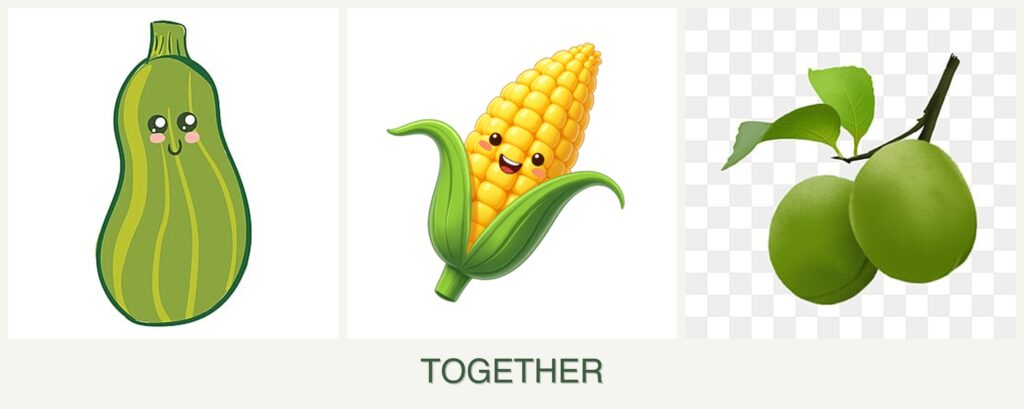 - Watering Needs: Corn’s high water requirement might conflict with the moderate needs of zucchini and plums.
