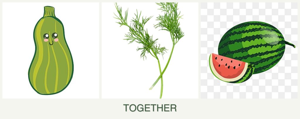 - Growth Requirements: Zucchini and melons prefer full sun and well-drained soil, while dill can tolerate partial shade.