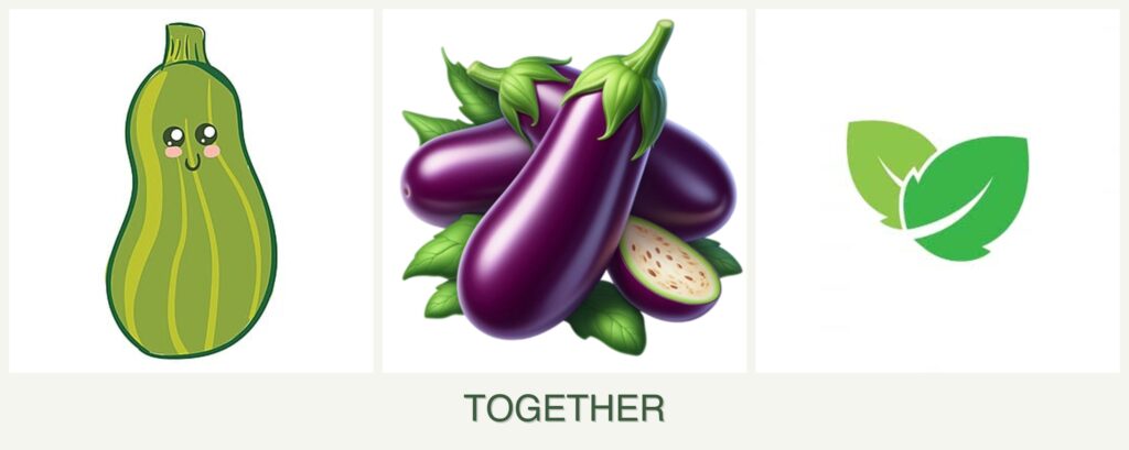 - Improved Growth: Zucchini and eggplant benefit from each other’s shade and soil coverage.