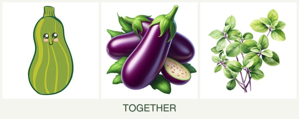 Planting zucchini, eggplant, and oregano together offers several benefits: