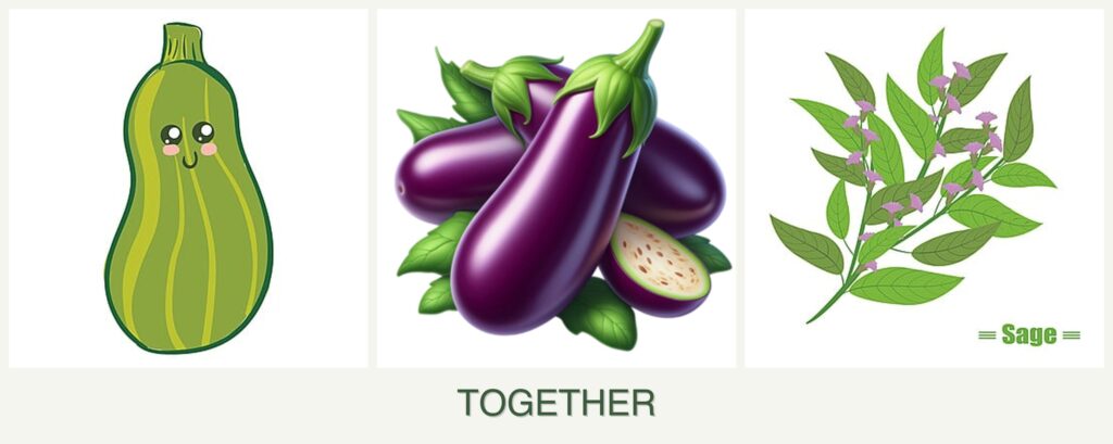 Planting zucchini, eggplant, and sage together offers several benefits: