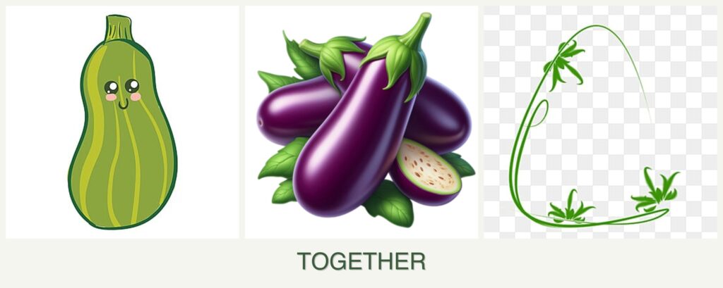 - Pollinator Attraction: Flowers from zucchini and eggplant attract pollinators, which can benefit all plants in the vicinity.