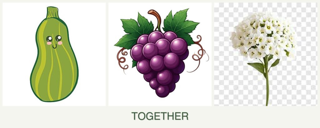 Planting zucchini, grapes, and alyssum together can offer several advantages:
