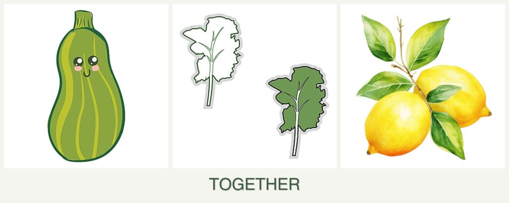 Planting zucchini, kale, and lemons together offers several benefits: