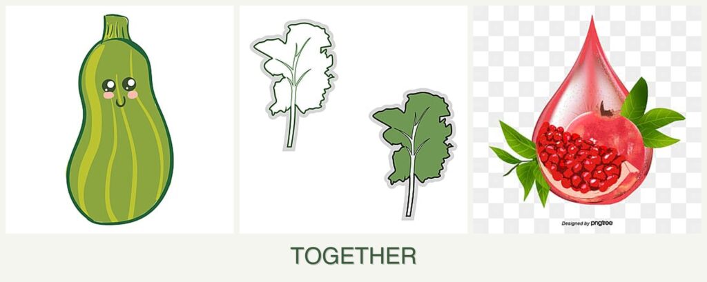- Avoid planting zucchini with potatoes and pomegranates with crops requiring high water.