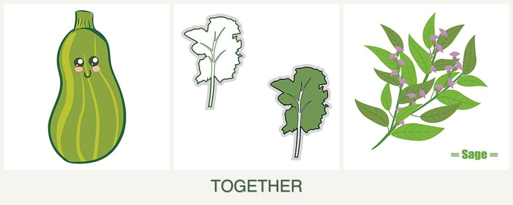 - Growth Requirements: Zucchini and kale need similar sunlight and water, while sage requires less moisture.
