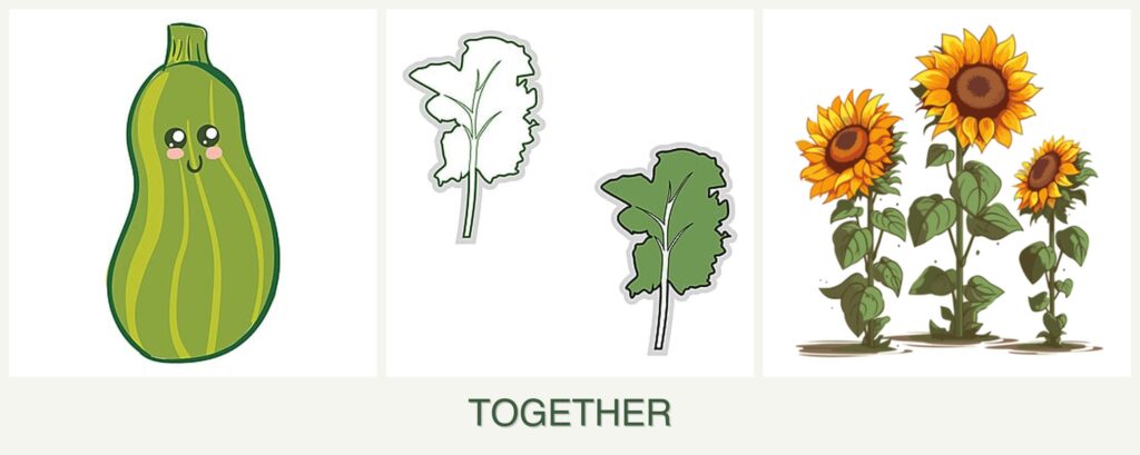Planting zucchini, kale, and sunflowers together offers several advantages:
