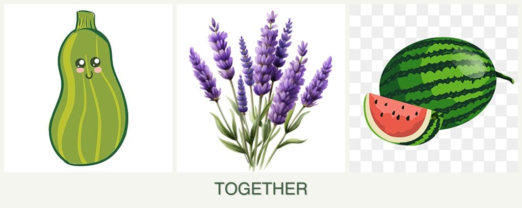 - Pest Control: Lavender can repel some pests, but zucchini and melons may still attract others.