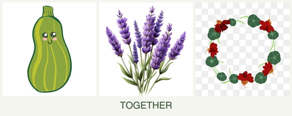 What should not be planted with zucchini, lavender, and nasturtiums?