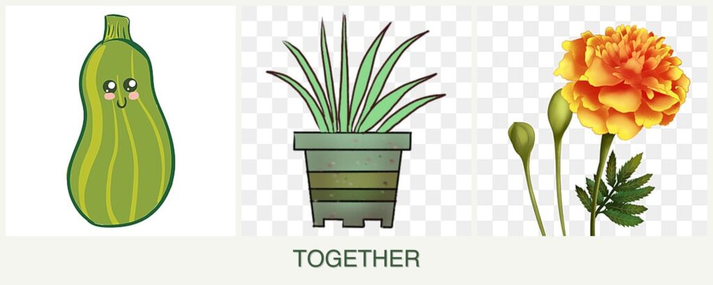 Planting zucchini, lemongrass, and marigolds together offers several advantages: