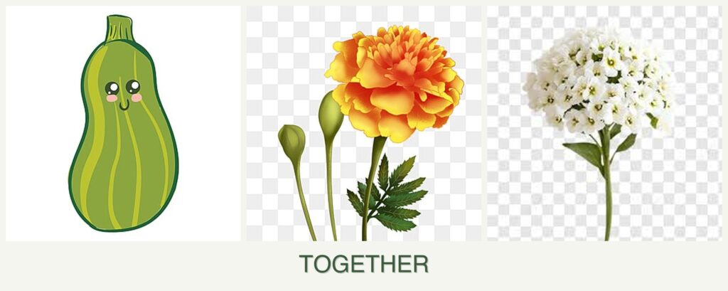 Planting zucchini, marigolds, and alyssum together offers several advantages: