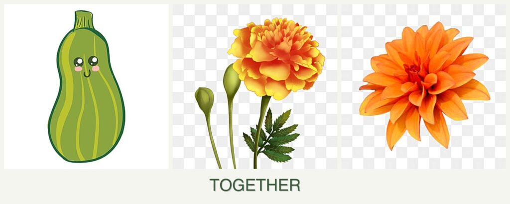 Planting zucchini, marigolds, and dahlias together offers several benefits: