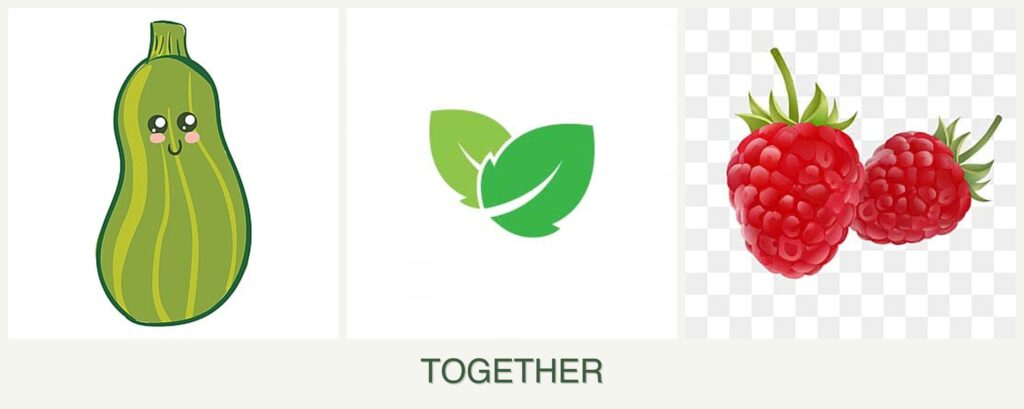 - Pollinator Attraction: Zucchini and raspberries attract bees, enhancing pollination.