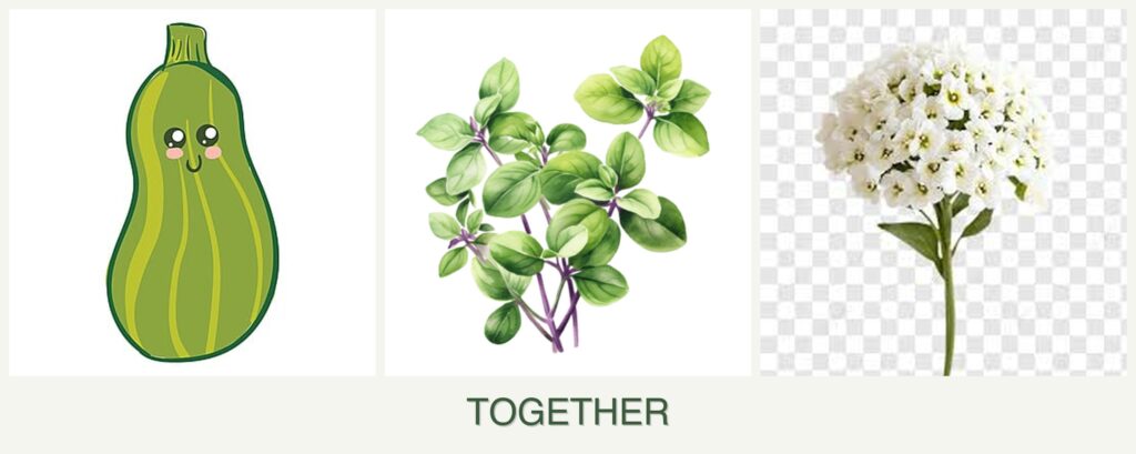 Planting zucchini, oregano, and alyssum together offers several advantages: