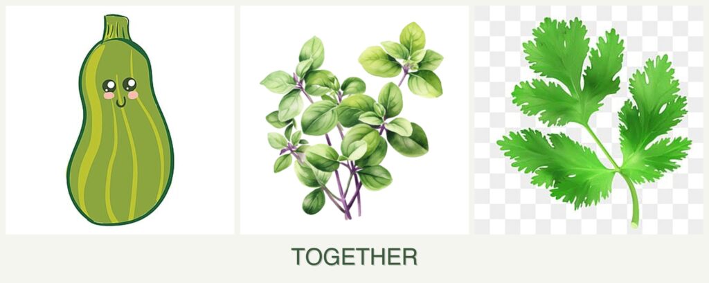 Can you plant zucchini, oregano and parsley together?