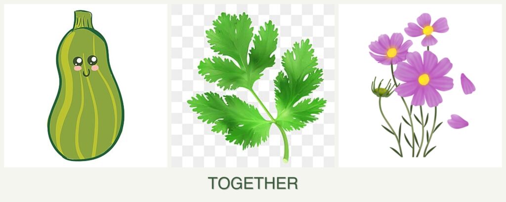 Planting zucchini, parsley, and cosmos together offers several benefits: