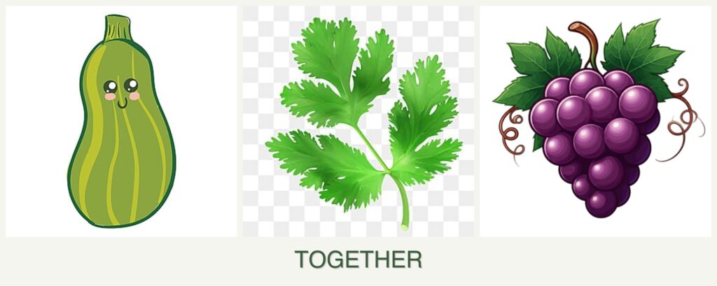 - Pest Control: Parsley can attract beneficial insects that help control pests, which is beneficial for zucchini. Grapes don’t directly benefit from parsley or zucchini but can coexist without adverse effects.