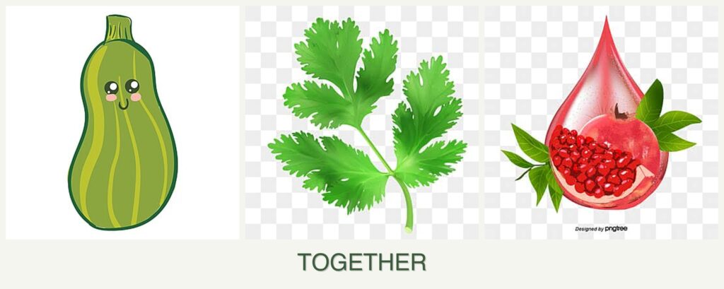 Planting zucchini, parsley, and pomegranates together can offer several benefits: