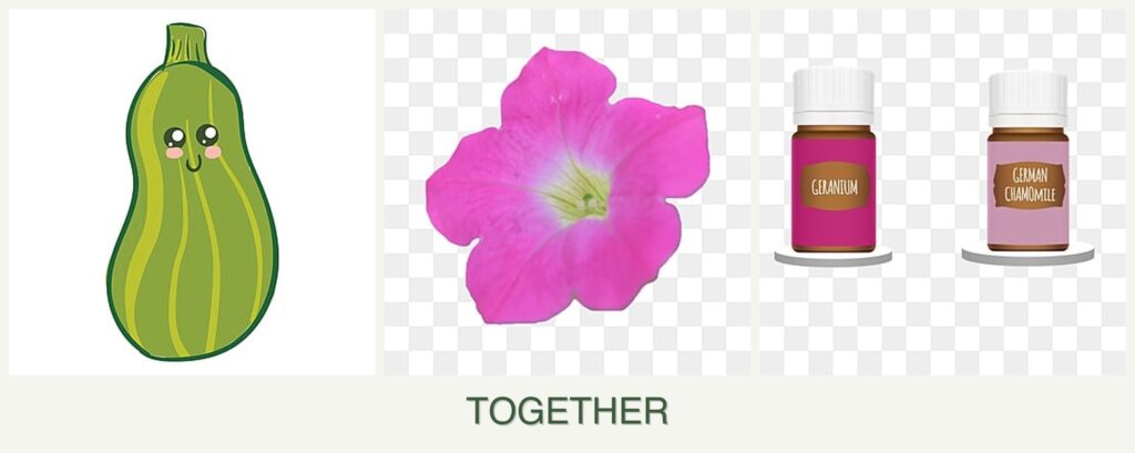 Planting zucchini, petunias, and geraniums together offers several benefits: